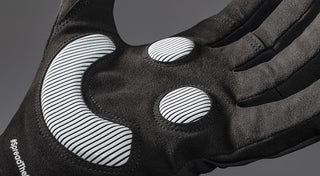 Glove 3.0 손바닥의 스마일은 실리콘으로 만들어져 두 가지 이점이 있습니다. 매우 깨끗하게 유지되고 그립감이 뛰어납니다. 또한 아래 패딩은 핸들바와 지속적으로 접촉하는 부위의 압력을 완화합니다.